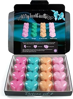 Highly fragrant perfume wax melts. Each heart provides up to 6 hours of scent. Contains 16 x 5g heart melts, offering up to 96 hours of total fragrance time.