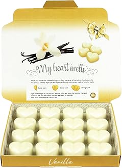 Highly fragrant perfume wax melts. Each heart provides up to 6 hours of scent. Contains 16 x 5g heart melts, offering up to 96 hours of total fragrance time.